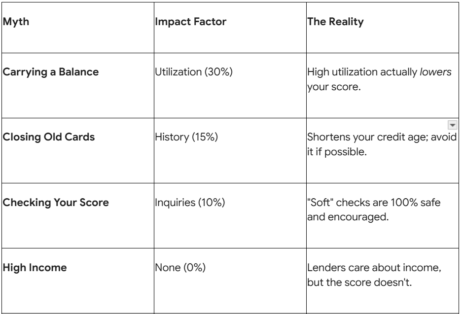The Myth: “I don’t use that old $500 card from college anymore; I should close it to simplify my life.”